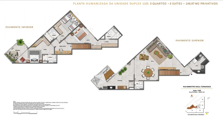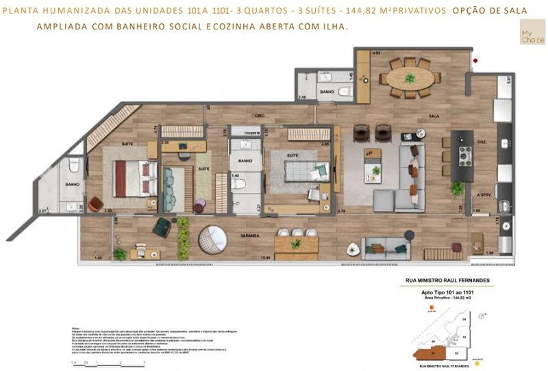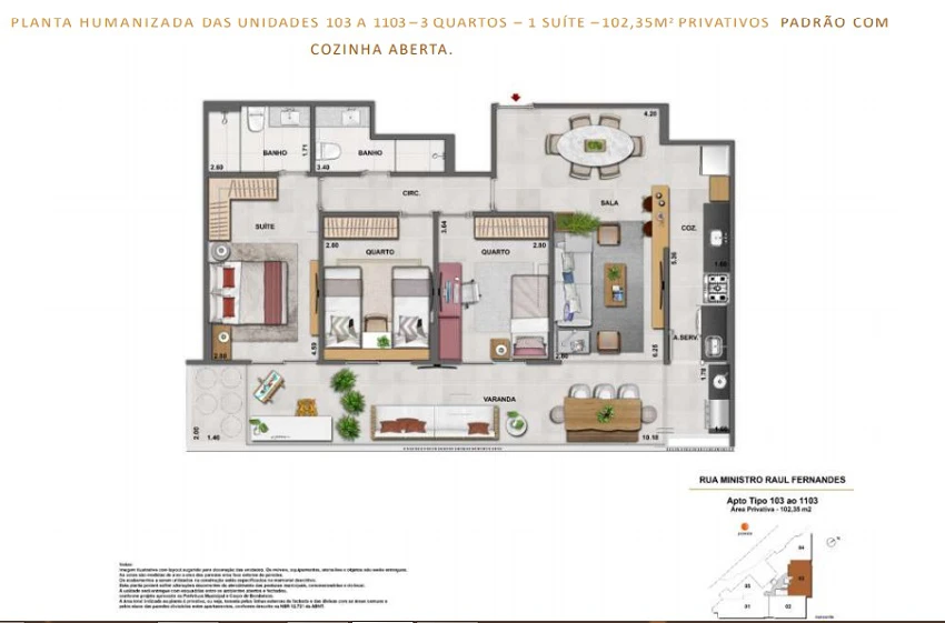 Apartamentos de 3 quartos de 102m² 149m².