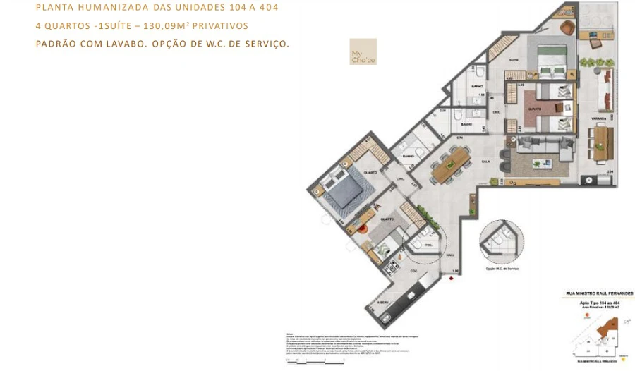 Apartamentos de 4 quartos de 130m² até 144m².