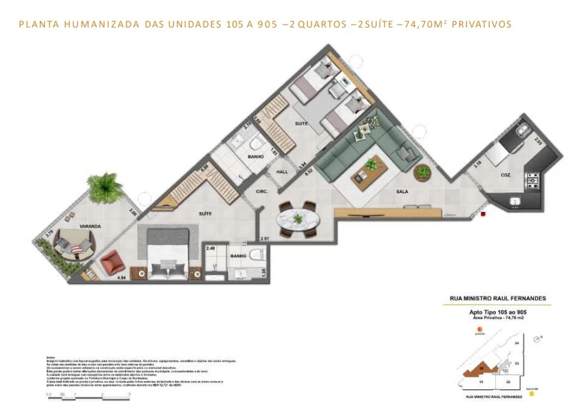Apartamentos de 2 quartos de 74m².